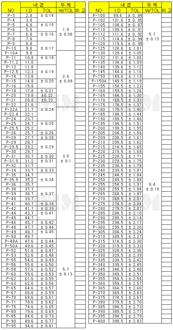 오링은 적용부위에 맞는 홈 가공과 특성에 맞는 정확한 재질 선정후 사용하여야 한다.